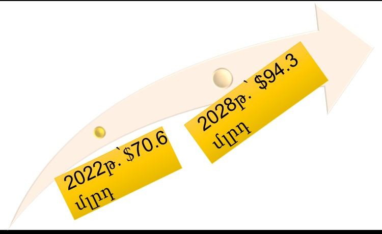Գծապատկեր 1. Պաղպաղակի համաշխարհային շուկայի փաստացի ծավալները 2022թ-ին և կանխատեսվող մակարդակը 2028թ-ին