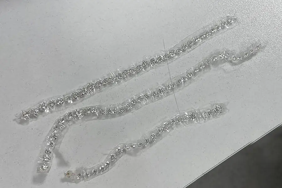 Իսկ քաղաքացու հագին գտնվող տաբատի՝ գործարանային կարվածքի տեսք ունեցող գոտկամասի մեջ էլ հայտնաբերվել են գաղտնարանների օգտագործմամբ, ապրանքների հայտնաբերումը դժվարացնող եղանակներով մաքսային հսկողությունից թաքցված, ինքնակպչուն ժապավենով իրար միացված տարբեր տրամաչափերով ադամանդանման 91 թափանցիկ քար։