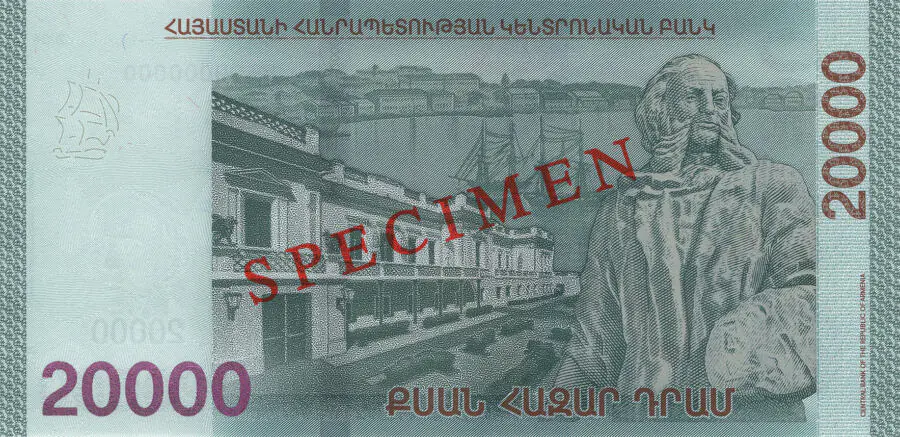 - Թղթադրամի աջ մասում Հովհաննես Այվազովսկու արձանի պատկերն է, որից աջ առկա են ուղղահայաց «20000» թիվը և «CENTRAL BANK OF THE REPUBLIC OF ARMENIA» մակագրությունը։