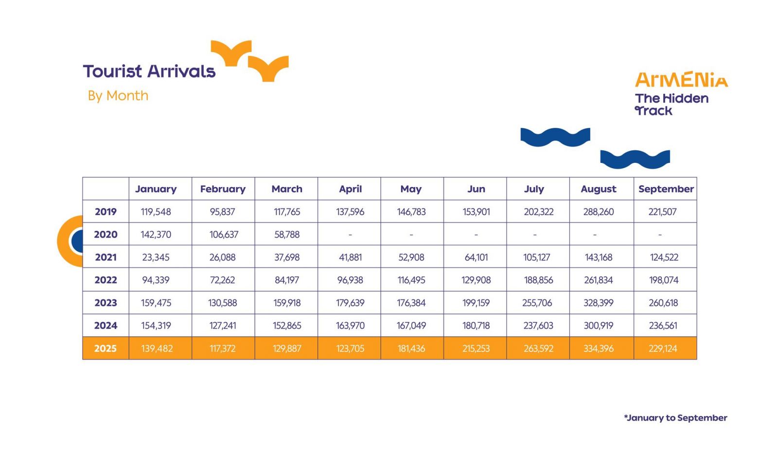 2025 թվականի սեպտեմբերին Հայաստան այցելել է 229.124 զբոսաշրջիկ։