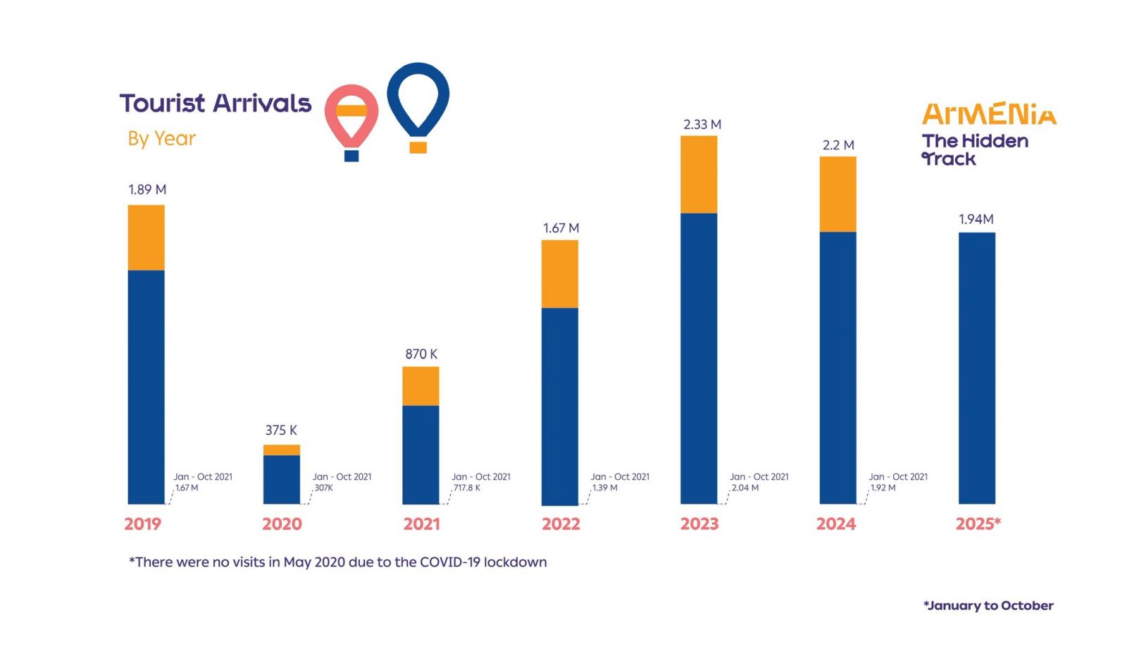 2025 թվականի հոկտեմբերին Հայաստան այցելել է 212.891 զբոսաշրջիկ։